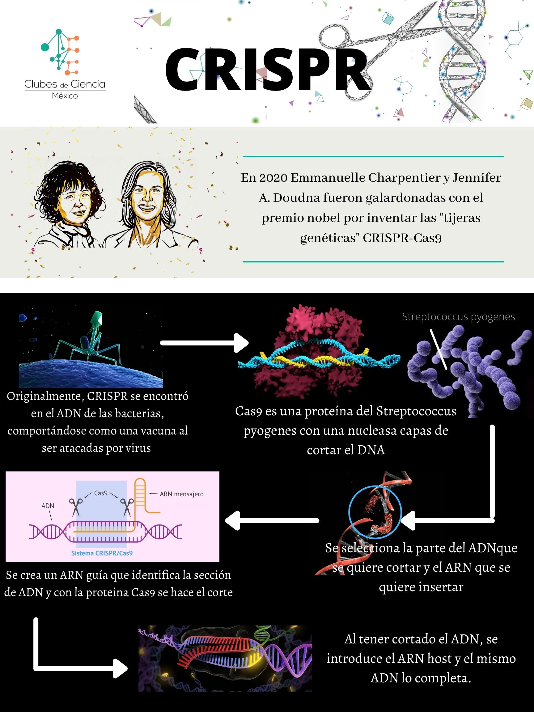 Find Out More¿Cuántas veces no hemos tomado un antibiótico para aquella gripe, infección estomacal o alguna otra enfermedad producida por bacterias?, creyendo que estas morirían… y si bien algunas de ellas mueren destruyendo la enfermedad hay otras que son resistentes, y es aquí cuando somos los campos de batalla de una guerra en nuestro sistema, ya que existen bacterias que son resistentes a los antibióticos y que son capaces de seguir multiplicándose aún con la presencia de ellos. Esta es una de las amenazas a nivel mundial más grandes a la que nos enfrentamos hoy en día, y es por ello que es de suma importancia buscar nuevas herramientas que adopten mecanismos bactericidas evitando la resistencia de las mismas, una de ellas la famosa técnica CRISPR_Cas9, la cual fue la acreedora al Premio Nobel de Química 2020 y la cual entre sus múltiples aplicaciones actualmente se enfrenta a la dura tarea de frenar la aparición de resistencia a antimicrobianos... ¿lo logrará?